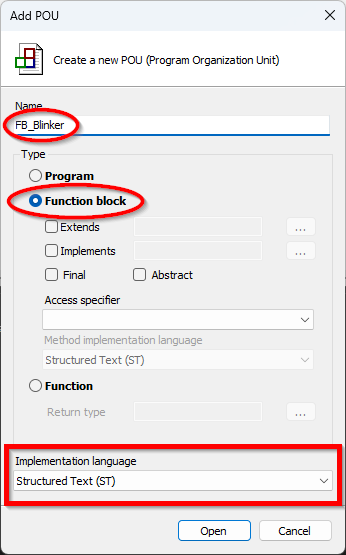 新たにPOUを追加します。この際、TypeからFuncttion block