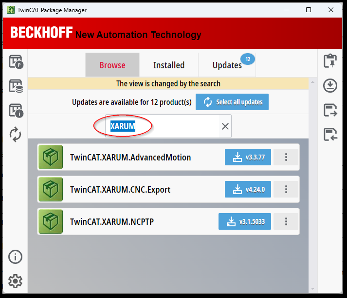 NC-PTPやNCI, CNCなどを取り扱う場合、別途ユーザモードランタイム向けのドライバが用意されています。これらはWorkloadでは現れませんので、一覧をPackagesに切り替えた上で、XARUM
