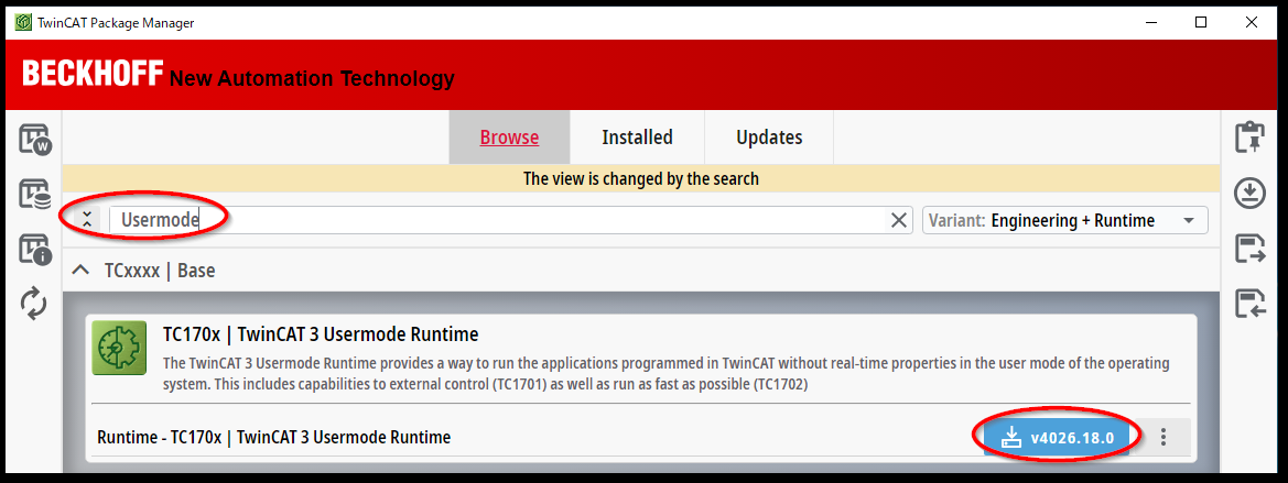 ユーザモードランタイムは、TwinCAT 3.1 4026 から追加された機能です。